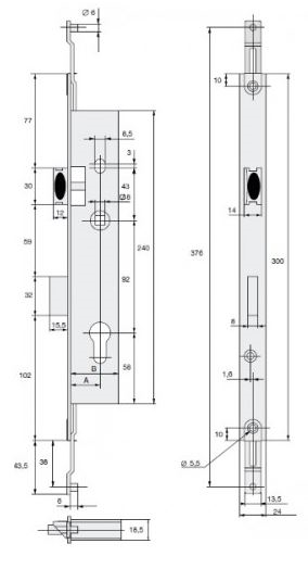 Entraxe : 92 mm - Carré : 8 mm - Pêne : 15 mm.