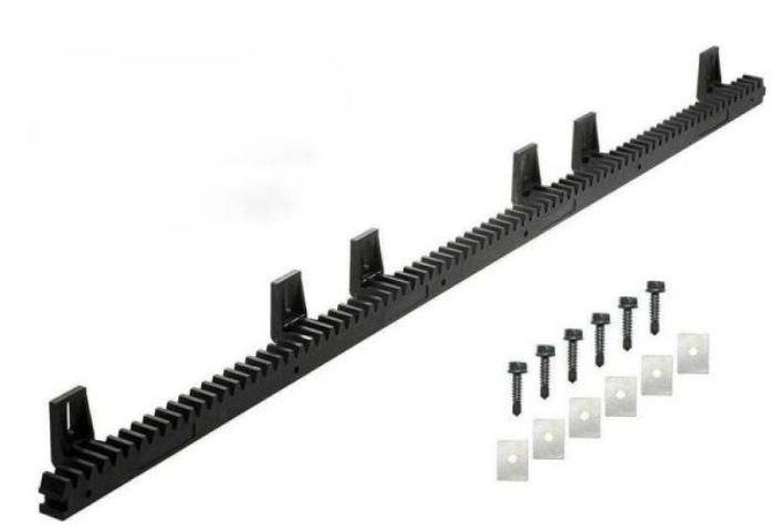 Cette crémaillère de 1 mètre de longueur est fabriquée en nylon armé avec un noyau métallique, offrant une excellente résistance mécanique pour un fonctionnement durable et silencieux.