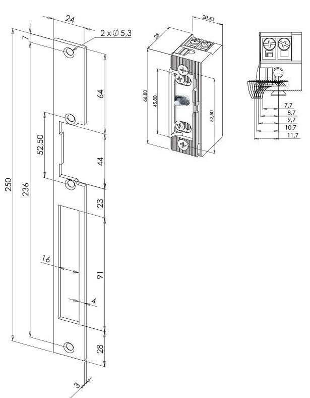 Gâche électrique en applique 2120 12-24V AC/DC réversible à émission de courant avec mémoire / . Force De Retenue300 daN / . Type De...