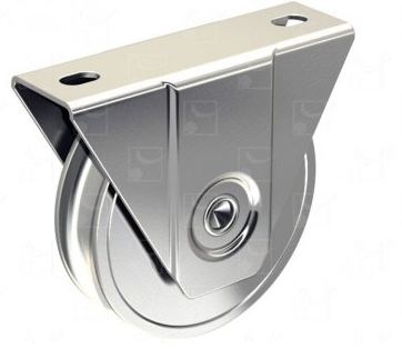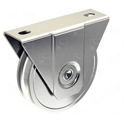 Monture à support intérieur acier galvanisé. Galet acier zingué Ø 80. Gorge en V largeur 20. Force / galet : 200 kg.