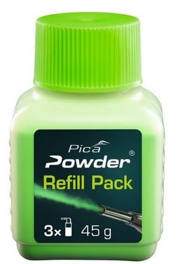 Poudre de recharge. . Poudre de craie verte fluorescente. . S'enlève facilement des surfaces lisses. . Poudre lavable & éliminable.